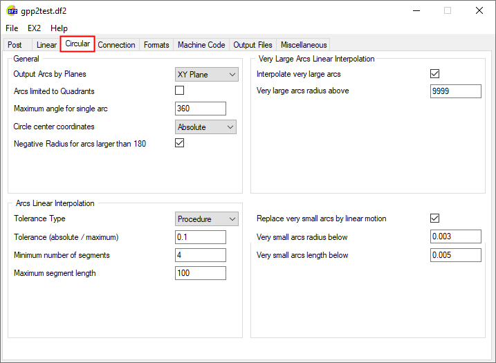 The DF2 configuration file contains a large set of parameters used to define how GPP2 operates in a given post-processor. Many of these parameters have associated system variables that can be accessed or modified in the EX2 program. These variables can also be used in the post-processor interaction in order to allow the end-user to change some of the values.