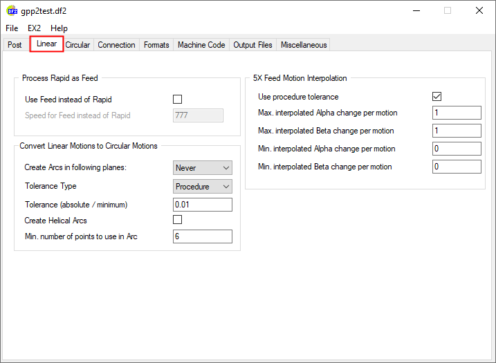 The DF2 configuration file contains a large set of parameters used to define how GPP2 operates in a given post-processor. Many of these parameters have associated system variables that can be accessed or modified in the EX2 program. These variables can also be used in the post-processor interaction in order to allow the end-user to change some of the values.