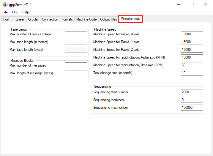 The DF2 configuration file contains a large set of parameters used to define how GPP2 operates in a given post-processor. Many of these parameters have associated system variables that can be accessed or modified in the EX2 program. These variables can also be used in the post-processor interaction in order to allow the end-user to change some of the values.