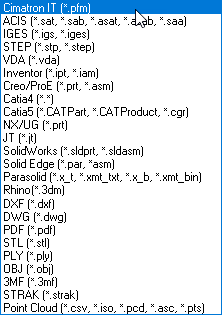 For a summary of the Data Interface Import/Export formats supported by Cimatron (including their CAD version numbers), see Cimatron's Import/Export Capabilities at a Glance.