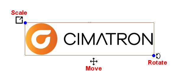 Select the picture to display the control points. Pick the relevant point to Scale, Move or Rotate the picture |