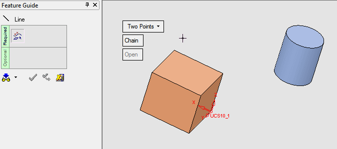 If a face is selected, the system creates a line starting at the picked point and Normal to the face (the Tangent option is unavailable). If more than one line can be found, a Normal line closest to the picking point is created.