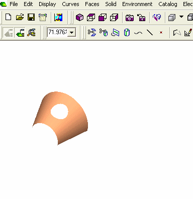 The picked face and its boundaries are presented as a sketch with the origin of the UCS positioned at the corner U=0, V=0 or the closest corner to it (from which the X and Y directions are taken).