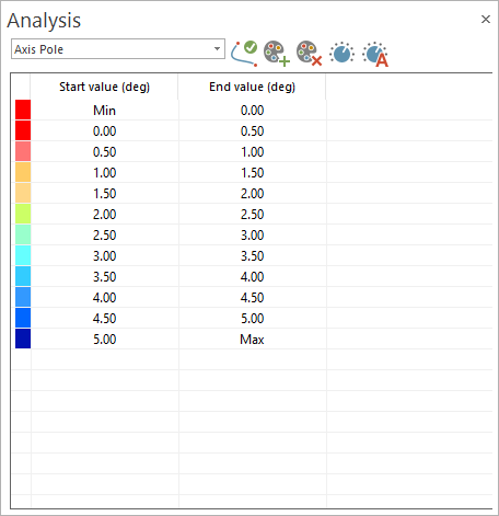 Adjust: allows the user to set a custom interval for his entire analysis or rest to default everything and opens the "Adjust Axis Pole" dialog, which has the following options: