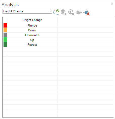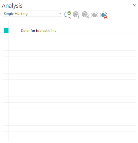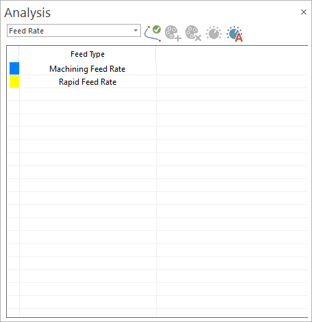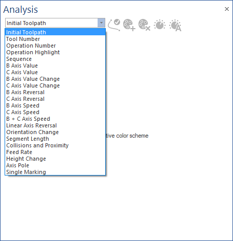 The toolpath analysis applies colorization schemes on the toolpath, which let's the users analyze it from the following features point of view: