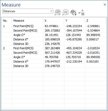 - Distance d* X, Y, Z: which represents the distance between the two points, measured on axes X, Y and Z