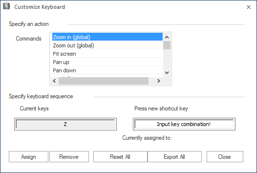 If the key(s) is already assigned to another functionality, a pop-up message appears specifying the functionality to which the key is already assigned and asking if you want to reassign the shortcut key. Click Yes to re-assign the key to the new functionality.