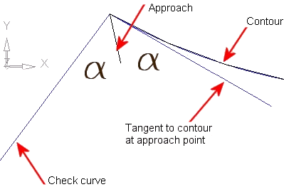 A linear motion bisecting the angle between two adjacent entities. This option is only displayed for 2.5 Axes Profile procedures (all options). |