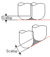 Set the required scallop size. The scallop defines the surface quality of Finish milling. When the Scallop option is selected, the step size (horizontal or vertical) is automatically calculated by the system.