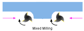 When milling closed contours, a combination of Climb and Conventional will be used. The cutter may be on different sides for each contour defined.