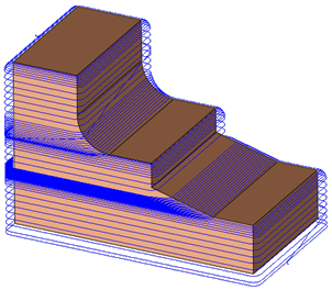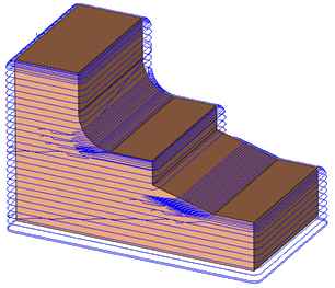 When the Dilute Passes checkbox is ON , the Variable Down Step layer height is still used, however unnecessary motions are reduced, thereby also reducing machining time. Note that using this option may cause the cutter to leave the part more often.