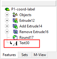 When completed, the Text feature will appear in the Feature Tree as follows: