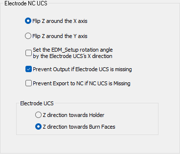 Prevent the creation of electrode drawings or output from EDM setup unless there is a user specified Electrode UCS in place. |