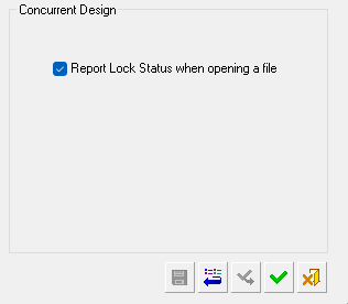 Set whether the Lock Status of a file is displayed when it is opened. This feature is enabled by default. Cimatron locks access to an open file, preventing a second user from overwriting the primary user's changes. When this checkbox is ON, a dialog will display the current User and Session information if a second user attempts to open a locked file. The file can still be opened, but can only be saved using the 'Save As' command. For more, see Concurrent Design. |