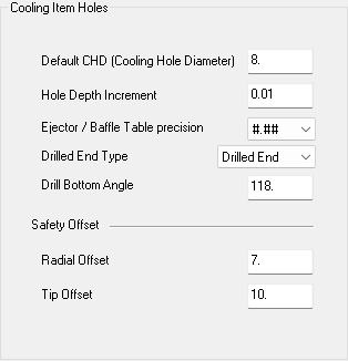 Define the default cooling item holes parameter settings. These parameters are used in the function Add Cooling Item With Channel.