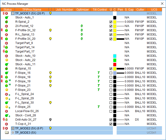 The image below shows the Process Manager table with all toolpaths and procedures as selected (selected items are highlighted).