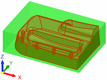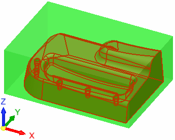 Define a stock that surrounds all selected entities. The resultant stock is a rectangular box which can be globally offset from the part. The offset value can be set separately for X, Y, and Z, with the Z offset having separate controls for the top and bottom to accurately set the location of the extra material.