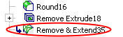 When completed, the Remove & Extend feature will appear in the Feature Tree as follows: