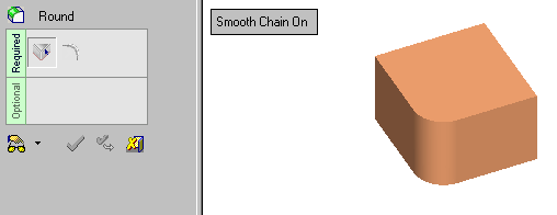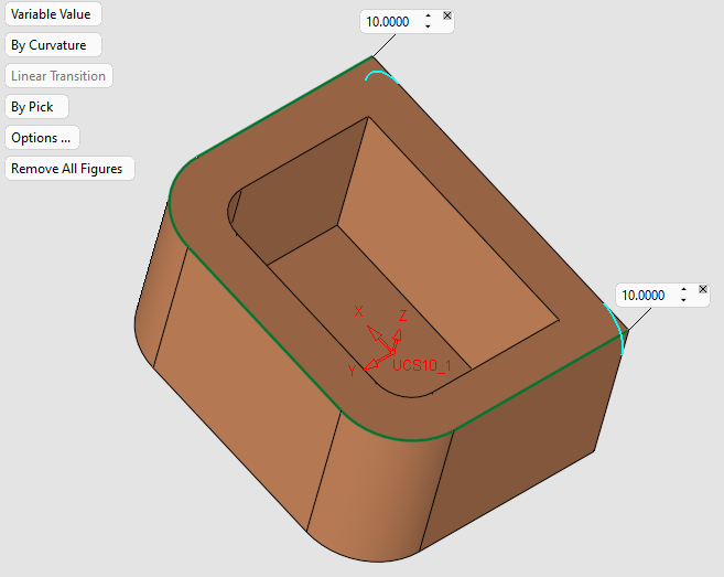 This page shows an example interaction to produce Round Variable Radii is shown below. For a Round Constant Radius, see the example here.