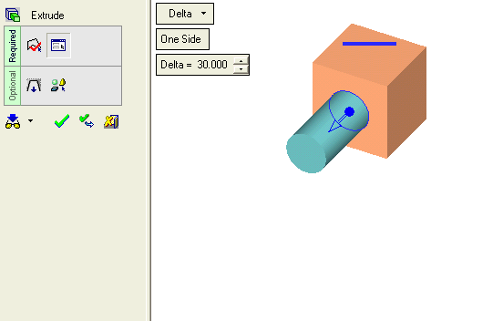 In the example below, the Add Extrude function is to be used to extrude the circle.