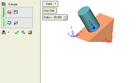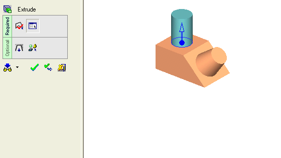 In the example below, a conic face is picked. (If the extrude direction points the wrong way, you can click on the arrow head or body to flip the direction 180 degrees.)