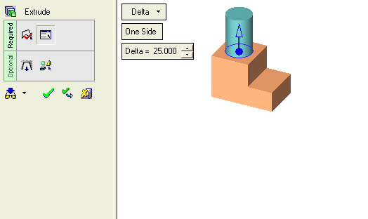 In the example below, the Add Extrude function is to be used to extrude the circle.