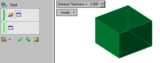 Pick the face(s) whose wall thickness you want to specify. In the example below, thicknesses for two walls were specified.