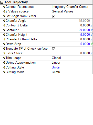 Tool Trajectory Parameters: 2.5 Axes > Chamfer Open Contour