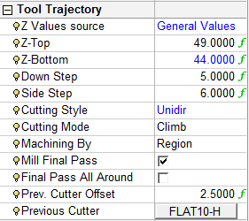 Tool Trajectory parameters