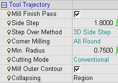 Rough surface pocketing. Remove material from enclosed regions by following the shape of part surfaces. |