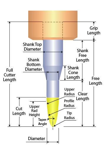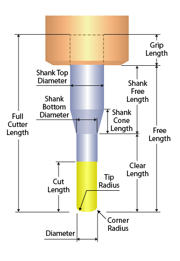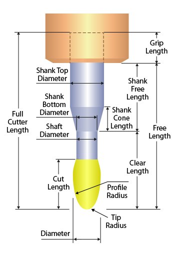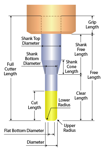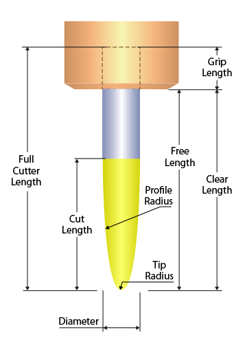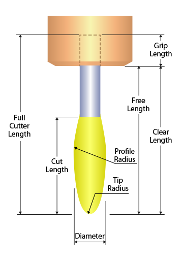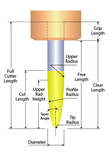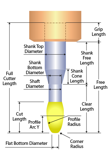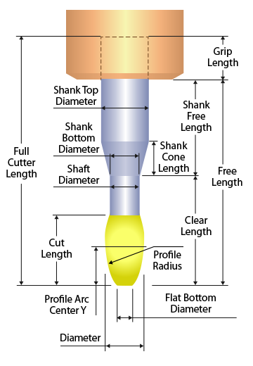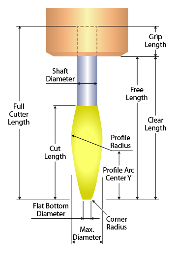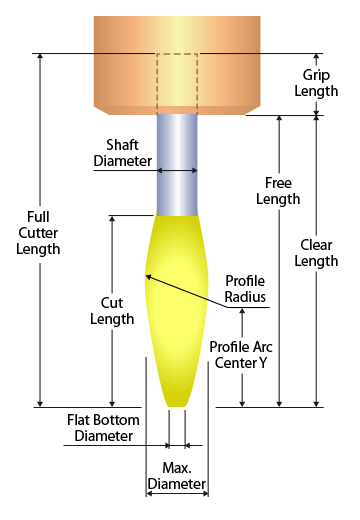 For Barrel Bull Nose cutters, at least one of the following parameters needs to be defined in order to create the cutter: Flat Bottom Diameter or Profile Arc Y. If these parameters are not available in the manufacturer's catalog, contact the manufacturer's support for these parameters and request the DXF files or drawings. |