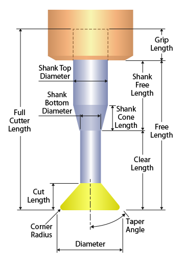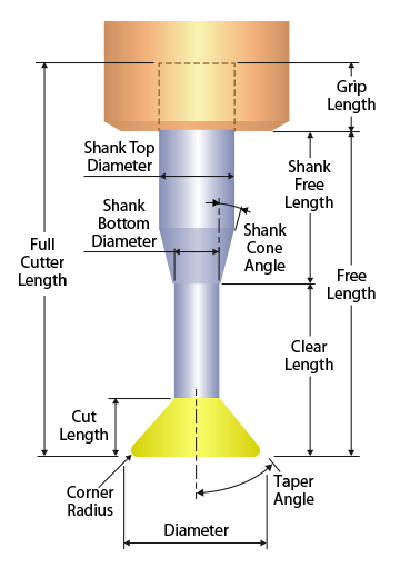 Dove Corner Radius Shank Angle |