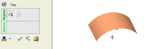 The face is trimmed by cross-section. Note that, by default, the top cross-section of the face remains (the top left side of the original face was picked in Required Step 1, above). |