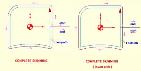 This path type will perform a complete skimming (finishing) of the whole part. You can invert the path, set an overlap and a wire exit distance.
