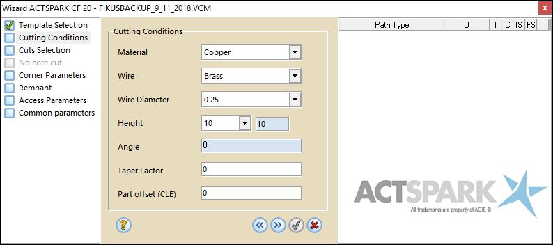 Next you will find the wire type selection. Only the available wires for the part material will be shown.
