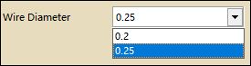 The next step consists in selecting the wire diameter. You can choose between the diameters displayed in the pull-down menu (only the available diameters for the chosen material will be shown). In this example: