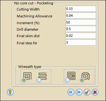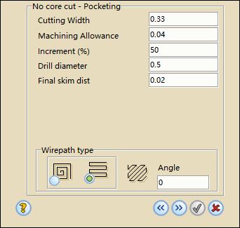 This step will only be available if the job to be done is a No Core Cut (Pocketing) process.