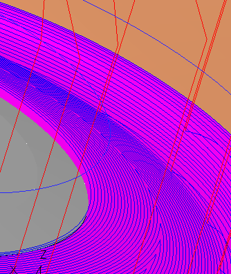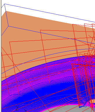 The smoothness of the toolpath along the surfaces is much better, but there are many rapid motions that connect the layers (vertical areas) and the spiral cut (horizontal areas).