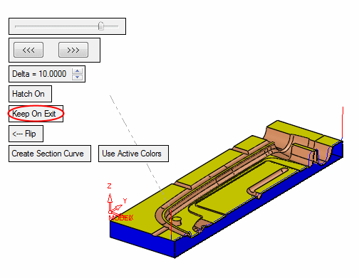 In order to improve surface quality, it is better to touch the material with a point on the cutter that is as close as possible to its outer diameter, where the tangential velocity is at its highest. This can be achieved by giving the tool a lead angle which will cause the touch point to move away from the tool center. In the Finish Parallel case, the cutter is tilted forward in the direction of the parallel lines.