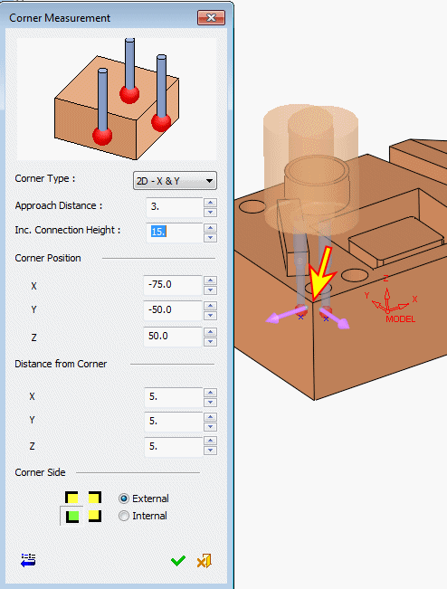 When the Corner Measurement dialog opens, pick the upper near left corner as shown below and set the parameters as shown in the following image: