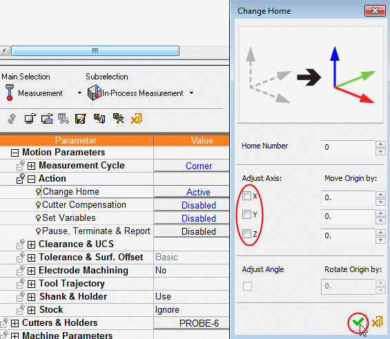 The Adjust Axes check boxes define for which axes to adjust the home position.
