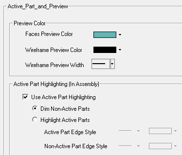 When unselected, no color change occurs when activating parts. In such cases, use the Assembly Tree to determine which components are active.