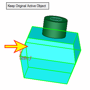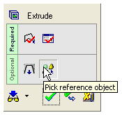 The extrusion will only pass through the reference object (the yellow object remains unchanged).