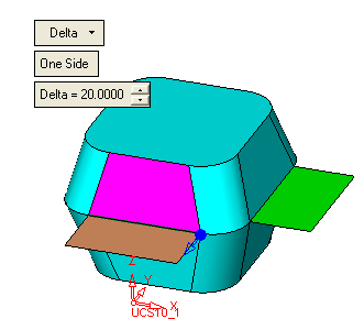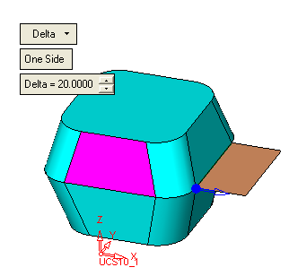 Select Faces/Sweep and create a Sweep with a delta of 20, Along X with the following angle parameters.