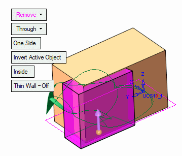 Activate the box within the extrude function (notifying Cimatron which object to cut). Select Wireframe > Datum > Plane Parallel.