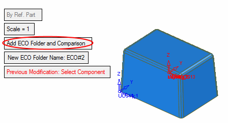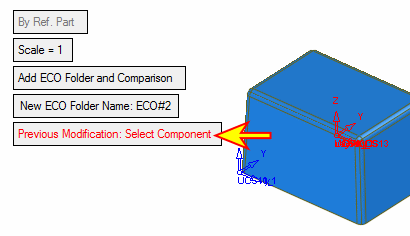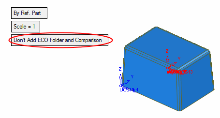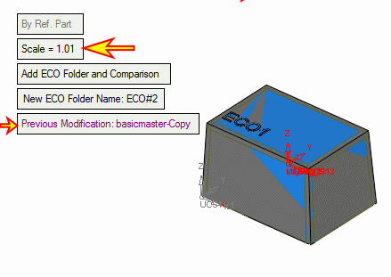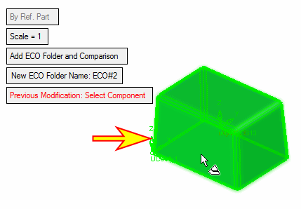 The positioning and scale is based on the selected reference part. The new ECO part was placed on top of the work part.