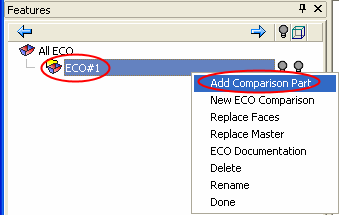 Right-click the ECO#1 folder and select Add Comparison Part.