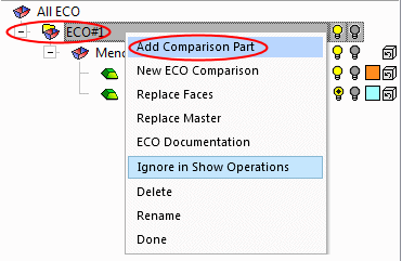 Right-click the ECO#1 folder and select Add Comparison Part.
