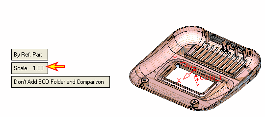 To place the ECO file in the correct location, orientation, and scale, use the By Ref. Part (default) option and select either the work part or the master part. (Also notice that before selection, the Scale is 1.)