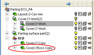 The ECO1 was added to the assembly tree (Cover17ECO1 – Copy.elt).